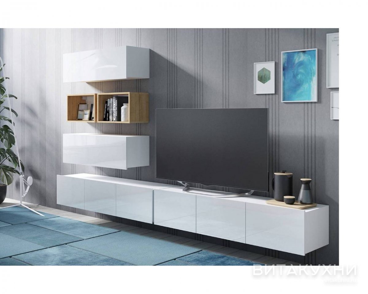 Стенка для гостиной Лорето 6 станет идеальным решением как для просторных, так и для небольших помещений. Её размер и эргономичный дизайн позволят максимально эффективно использовать пространство, а матовая поверхность создаст ощущение легкости и воздушности. Длинная тумба, входящая в состав стенки, оснащена удобной столешницей для размещения различной техники, а также вместительными ящиками для хранения документов, аксессуаров и прочих мелочей. Три подвесные полки идеально подойдут для размещения книг, предметов декора и фотографий Купить Стенку для гостиной Лорето 6 можно в нашем магазине.