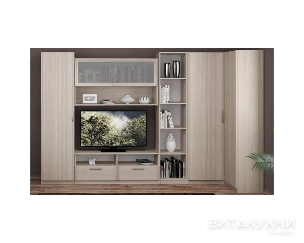 Угловая стенка Лотос 2 идеальное решение для тех, кто ищет просторное и стильное решение для хранения своих вещей. Сама стенка выполнена в древесном оттенке, что придает ей натуральности и уюта. Такой предмет мебели будет гармонично сочетаться практически с любым стилем интерьера. Модель включает в себя открытые полки для аксессуаров, вместительные шкафы, тв зону и полку с витриной. Приобрести Угловую стенку Лотос 2 приглашаем в наш интернет-магазин.