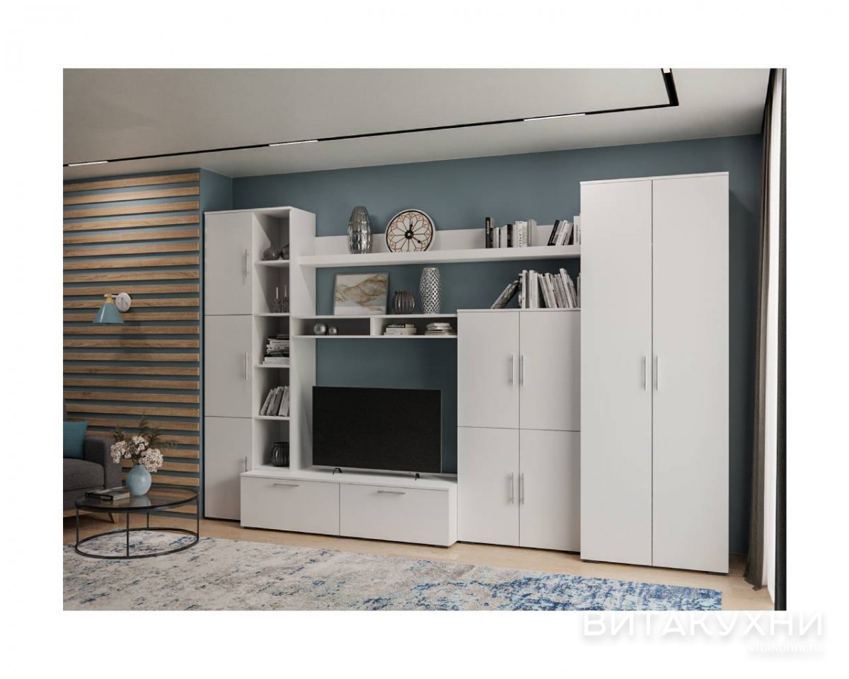 Стенка для гостиной Мальта - это элегантное и функциональное решение для вашей гостиной. Сочетание белого цвета и больших размеров делает эту стенку идеальным выбором для просторных интерьеров. Изготовлена из прочного ЛДСП, она обеспечит надежное хранение ваших вещей. Стенка включает в себя шкаф с фиксированным наполнением, что делает ее удобной и практичной. Приобрести Стенку для гостиной Мальта по выгодной цене приглашаем в наш интернет-магазин.