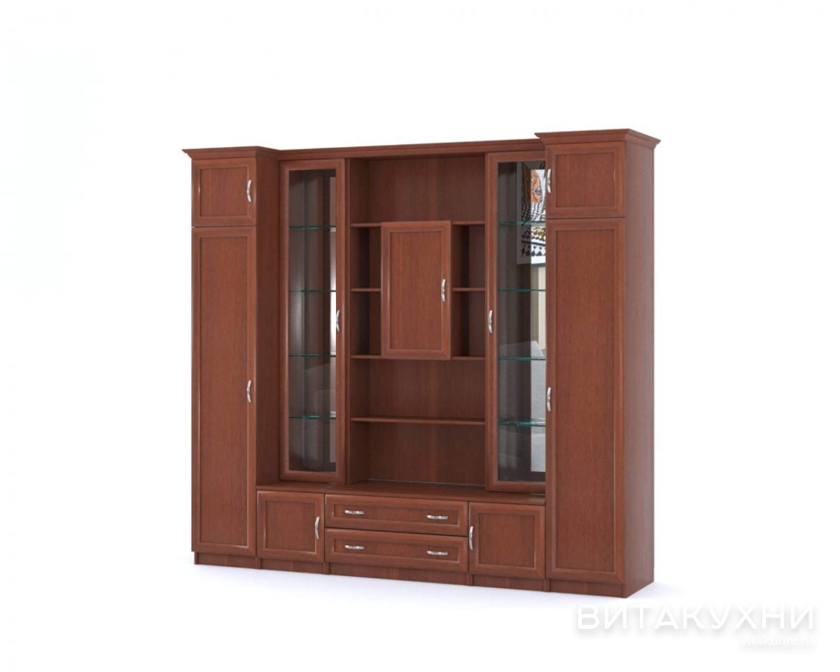 Стенка для гостиной Марина 10 - это прекрасное решение для тех, кто ищет стильную и функциональную мебель для гостиной комнаты. Два пенала по бокам придают стенке изысканный вид, а стеклянные дверцы позволят продемонстрировать ваши любимые предметы. Теплый оттенок “орех” гармонично сочетается с большинством цветов интерьера и создает уютную атмосферу. Несмотря на свои размеры, стенка не займет много места и отлично подойдет для средних и больших помещений. Приобрести Стенку для гостиной Марина 10 приглашаем в наш магазин.