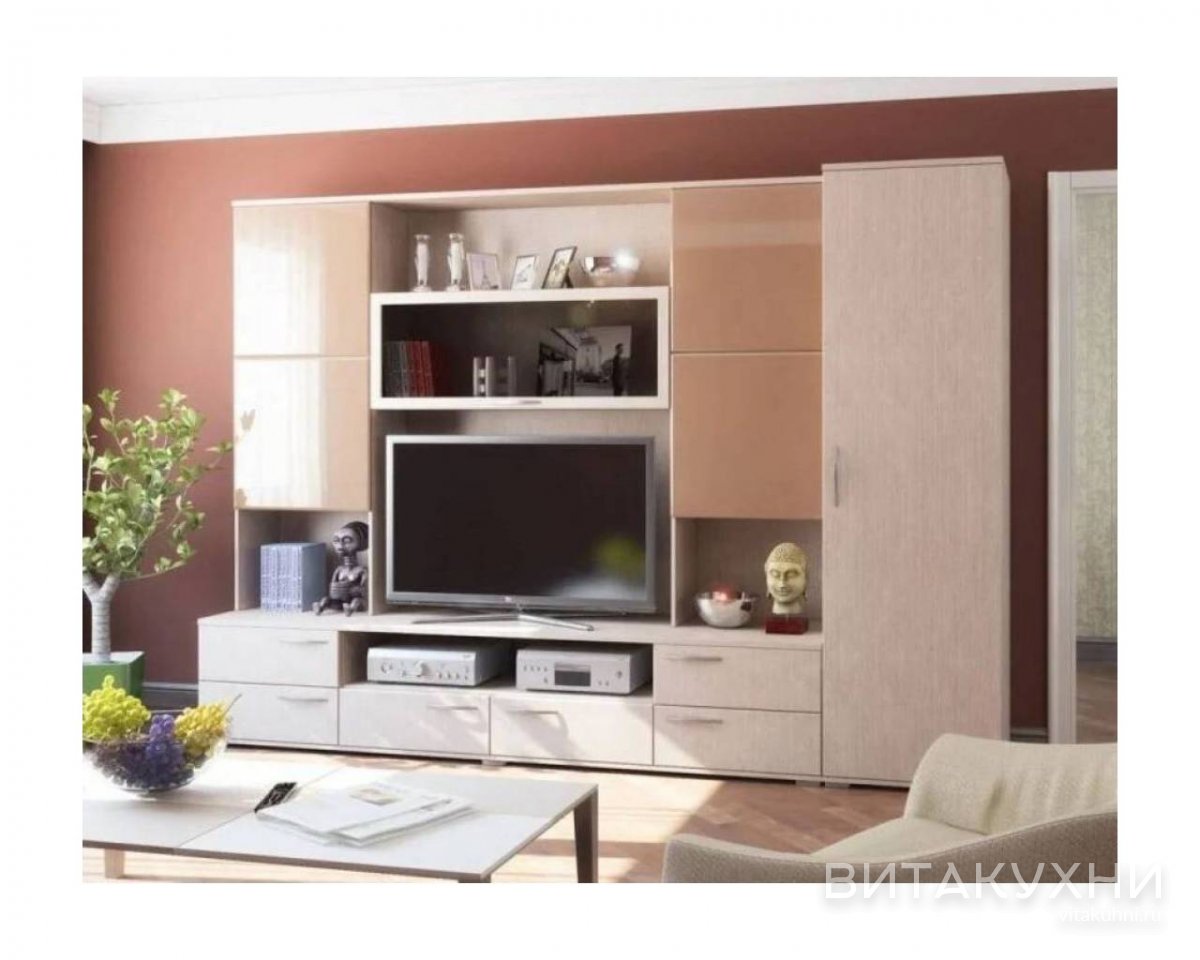 Стенка для гостиной Монако МДФ станет украшением любого интерьера и обеспечит надежное хранение вещей. Светлый древесный цвет стенки создает теплую и уютную атмосферу в помещении. Распашные шкафчики оснащены удобными ручками, которые придают изысканный вид. Глянцевый МДФ, из которого изготовлены боковые модули, обеспечивает прочность и долговечность мебели, а также придает ей элегантный блеск. Вместительные полки и ящики стенки позволят удобно организовать хранение одежды, постельного белья и других предметов домашнего обихода. Купить Стенку Монако МДФ по выгодной цене приглашаем в наш интернет-магазин.