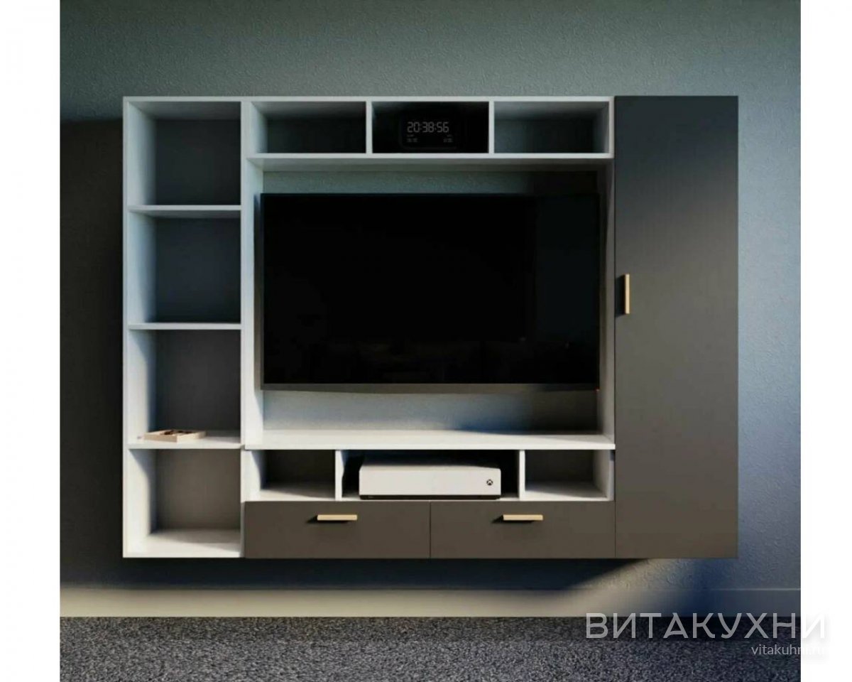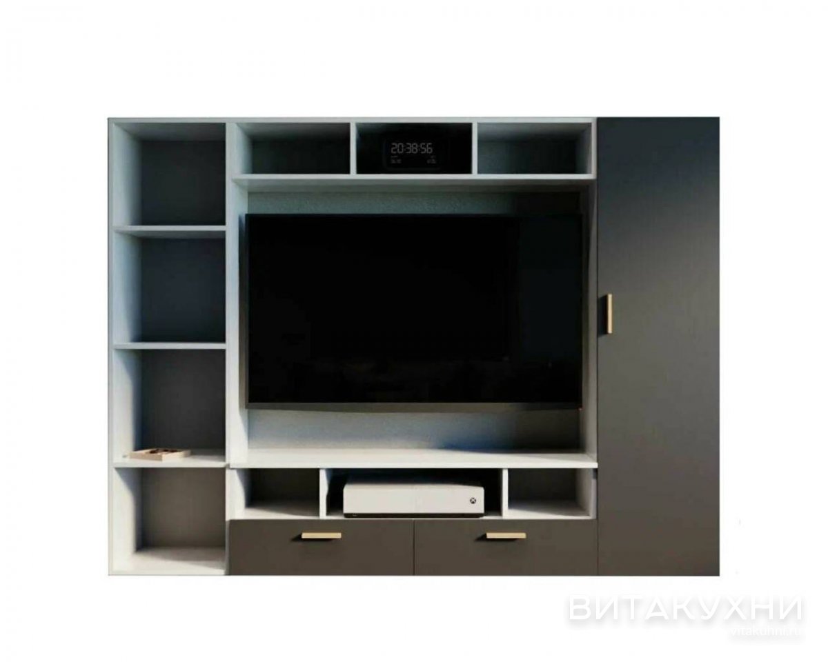 Стенка для гостиной Орнета - это стильное и функциональное решение для вашего гостиного помещения. Сочетание прямых линий, серого цвета и компактных размеров делает эту стенку элегантной и современной. Стенку украшают открытые полки. Они обеспечивают достаточно места для хранения различных предметов, таких как книги, фотографии и другие аксессуары. Тумба идеально подходит для телевизора или других мультимедийных устройств. Купить Стенку для гостиной Орнета приглашаем в наш интернет-магазин.