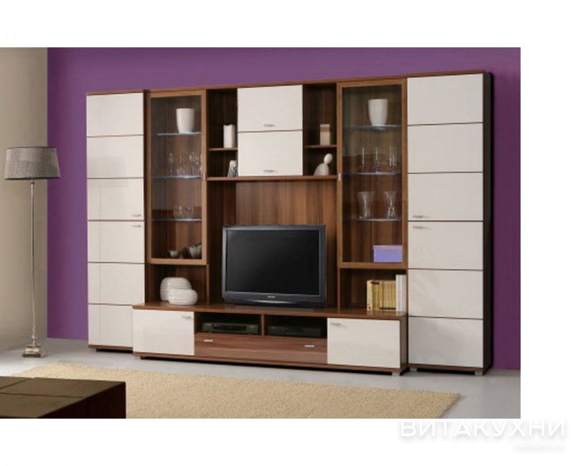 Стенка для гостиной Рана 1 идеально подойдет для просторных помещений и станет настоящим украшением вашего интерьера. Она оснащена тумбой для телевизора, а также полками и выдвижным ящиком для хранения ваших вещей. Стеклянные модули на фасаде тумбы добавят света и воздушности интерьеру, а также позволят разместить различные предметы декора. Распашные шкафы по бокам стенки станут отличным местом для хранения одежды и других вещей. Купить Стенку для гостиной Рана 1 по выгодной цене приглашаем в наш интернет-магазин.