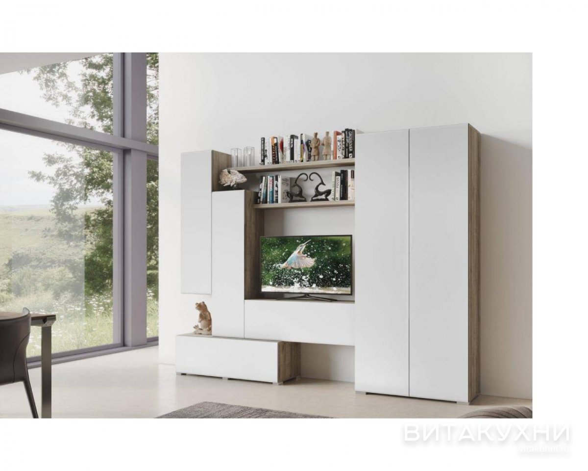 Стенка для гостиной Santa Уна - это современное и модульное решение в бело-древесном цвете для вашей гостиной. Эти оттенки также универсальны и могут сочетаться с разными вариантами интерьера, что позволяет использовать эту стенку в разных комнатах. Основные элементы стенки – это двухдверный шкаф, полки, подвесные тумбы и ТВ зона. Купить Стенку Santa Уна по выгодной цене приглашаем в наш интернет-магазин.